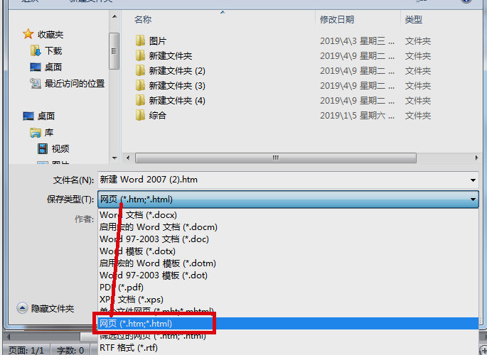 3、在另存为页面中,选择文件保存位置,再在“保存类型”右边的下拉框中选择“网页”,点击“保存”进行确定。