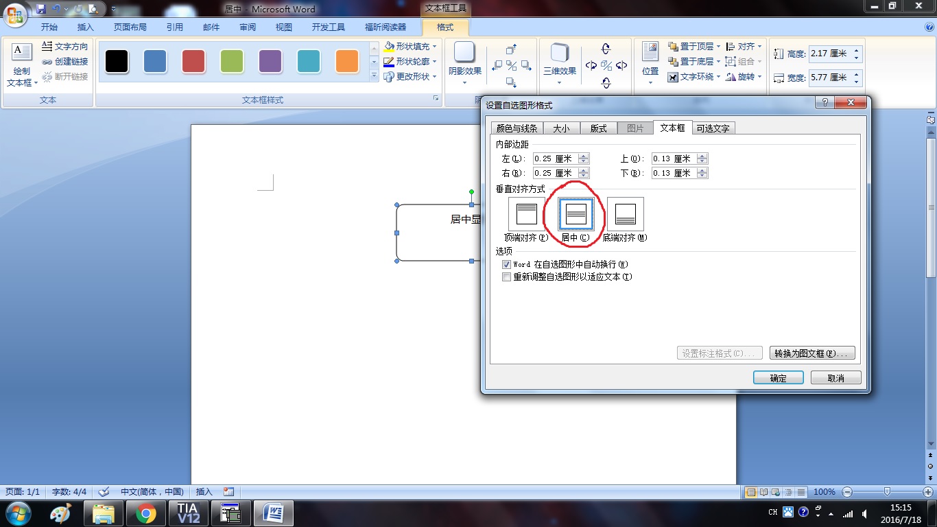 word流程图中的文字垂直居中设置不了?谁知道?截图可以看到灰色不可选