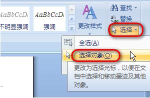 2:在“开始”项下找到“编辑”选项区,其中有一个“选择”的选项按钮,点击它