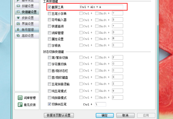 三、然后点击“快捷键设置”,勾选“截屏工具”,设置自己顺手的截屏快捷键。