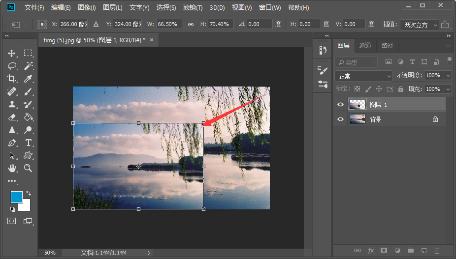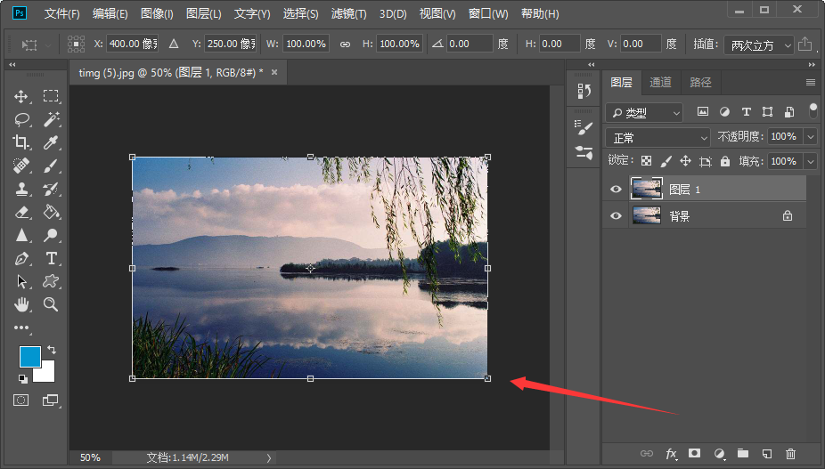 3、接下来按快捷键“Ctrl+t”自由变换图片。