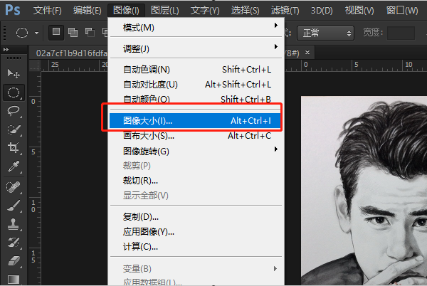 2、图像——图像大小——更改“像素大小”或“文档大小”;