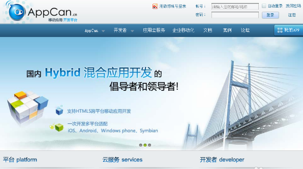 4.AppCan是国内的一个移动应用开发平台,支持跨平台应用开发,支持HybridApp的开发和运