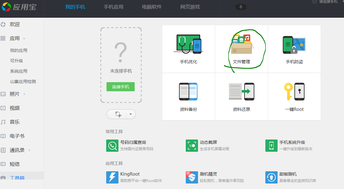 我的手机软件都是在PC版应用宝里下载的,这个里的软件很全。