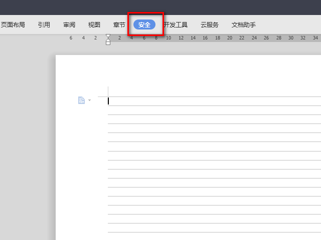 1.打开word文档,在文档页面中找到安全选项,点击该选项进入至安全主页面中。