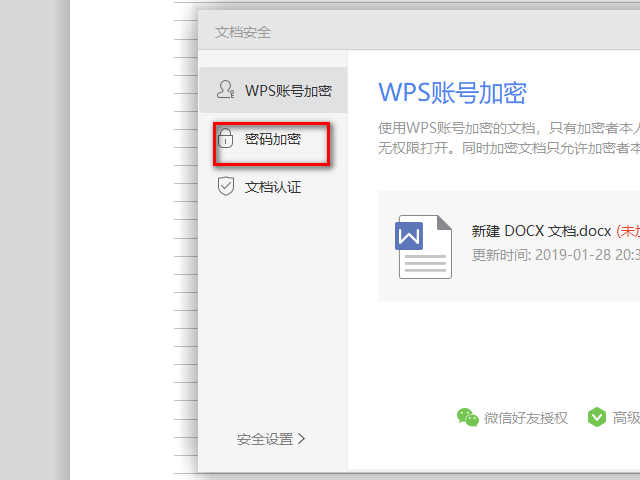 2.在安全页面中找到文档加密选项,点击该选项进入至文档加密主页面中。