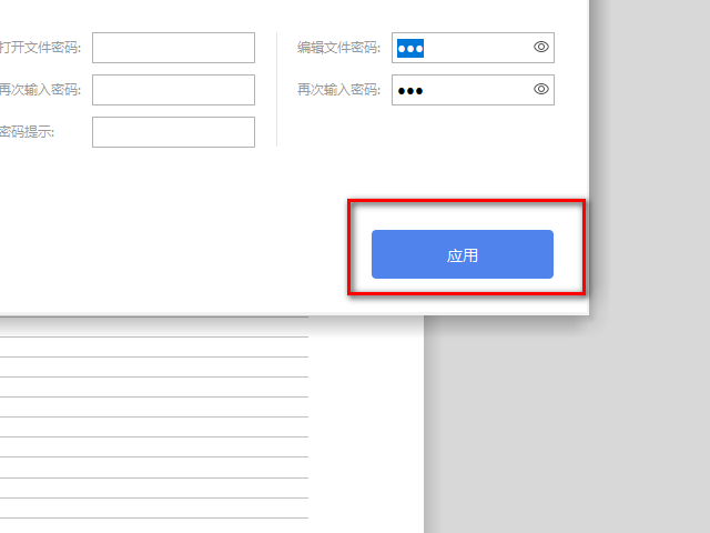 6、如果想要将密码撤消掉,扔返回文档,选择-文件下的设置密码栏,将密码全部删除,然后点击应用即可撤销密码。