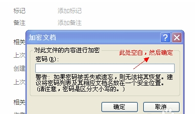 2、弹出“加密文档”对话框,删除原有密码,并确定即可。