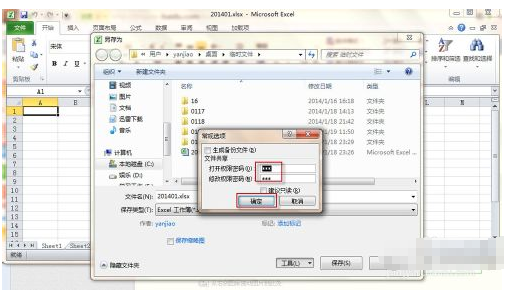 3、在设置密码栏中,对打开权限设置密码,输入两次密码,如果怕忘记就再写一个提醒备录