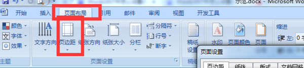1、在“页面版式”选项卡上的“页面设置”组中,单击“页边距”。