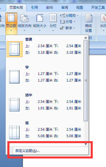 1、在“页面布局”选项卡上的“页边距”组中,选择自定义边距,单击“页边距”。如图所示: