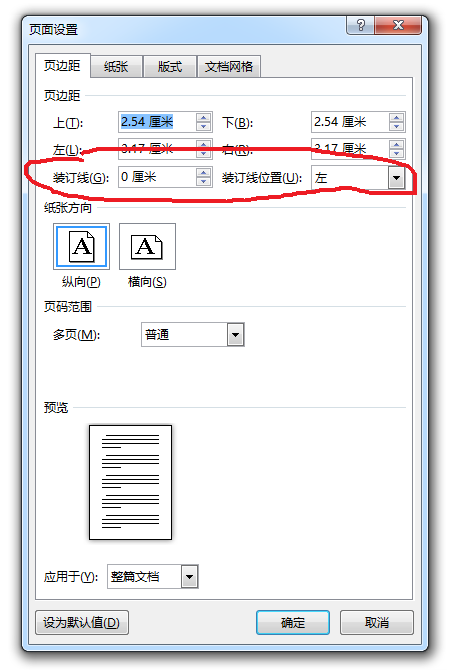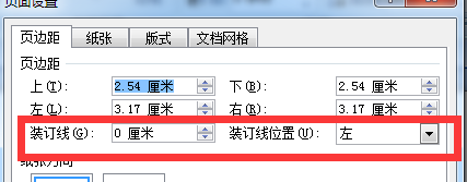 2、在“装订线”框中,输入装订线边距的宽度。在“装订线位置”框中,单击“左”或“上”。