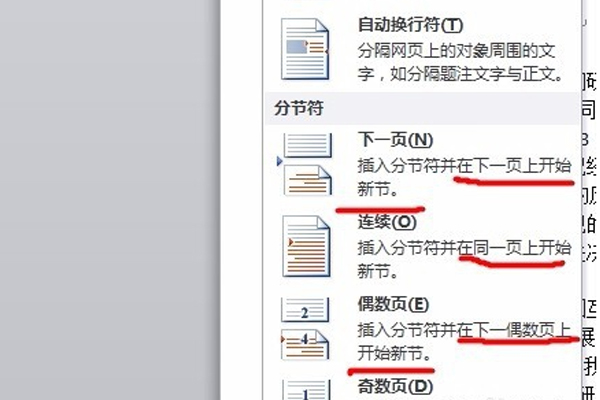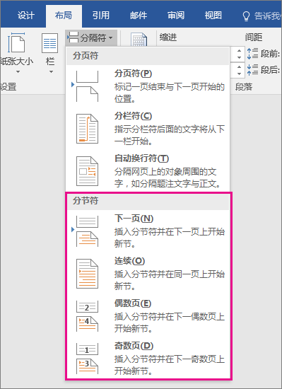 word中分节符的类型,下一页、连续、偶数页、奇数页有什么区别啊?