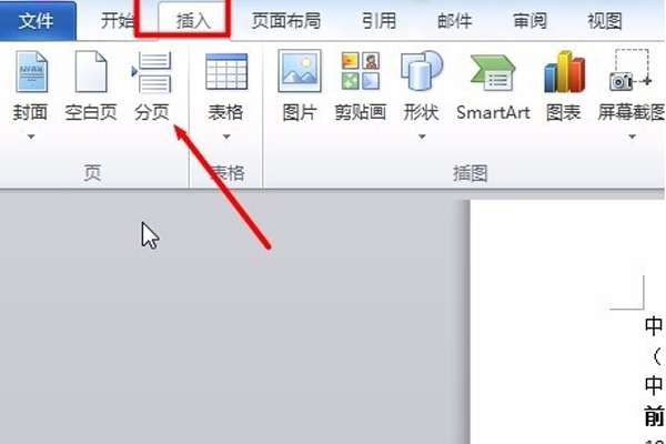 1、将光标放在需要分页的位置,可以点击“插入”选项卡下面的分页,这样就添加了新的一页,光标后面的内容自动到下一页去了;
