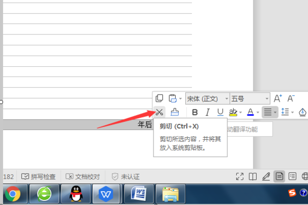 3、选中这一页的群补内容后点击弹出选项框中的剪切选项将所选中的内容剪切到剪切板上。