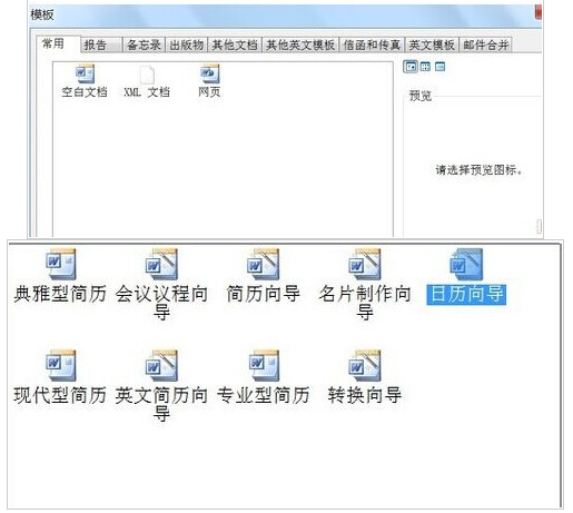 2、点击打开本机模板,出现模板对话框,如下图1,找到“其它文档”选项卡,从中选择“日历向导”,如下图2,选择好后,点击“确定”;