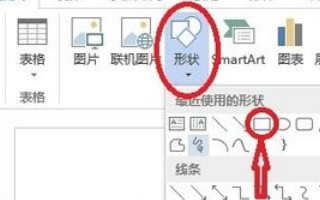 2、从插入的下拉菜单中找到形状按钮,点击选择矩形。