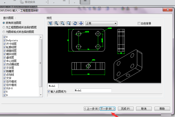 1、打开solidworks软件,选择打开CAD图,选择图层、线段及图纸大小等选项。