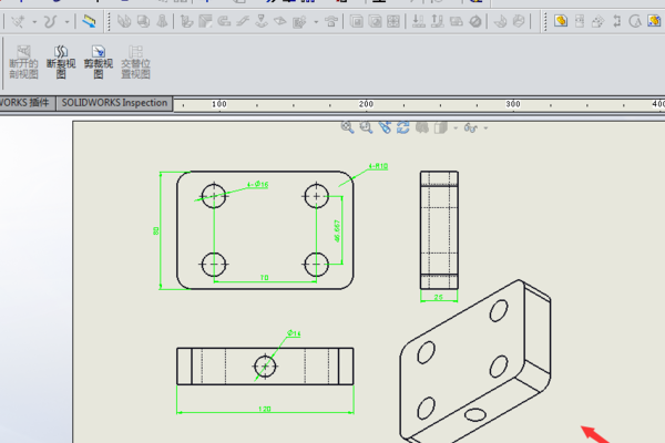 2、这样打开的图纸在solidworks工程图中,删除尺寸线及轴测图。