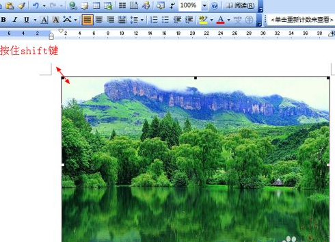 3、按住shift+图片四角的箭头进行调整,这样调整的图片不会变形,是等比例的缩放