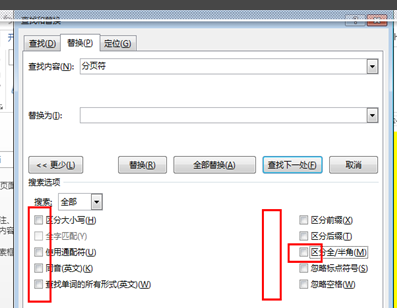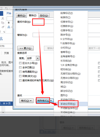 2、删除整个文档的全部分页符:用替换功能