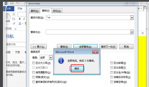 自动找到所有的分页符,并替换掉,点击“确定”,关掉剩下的界面,回到word编辑窗口中。