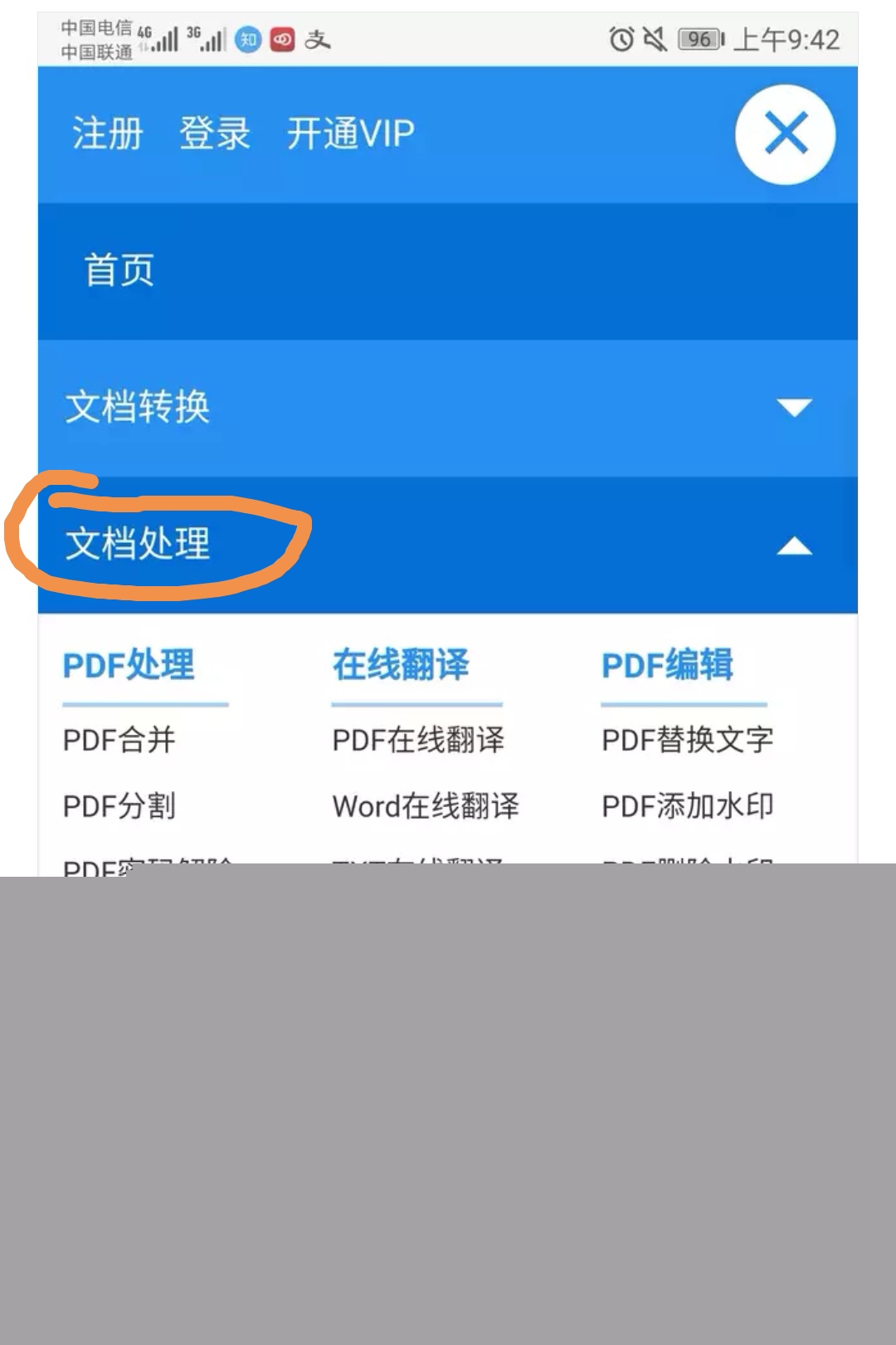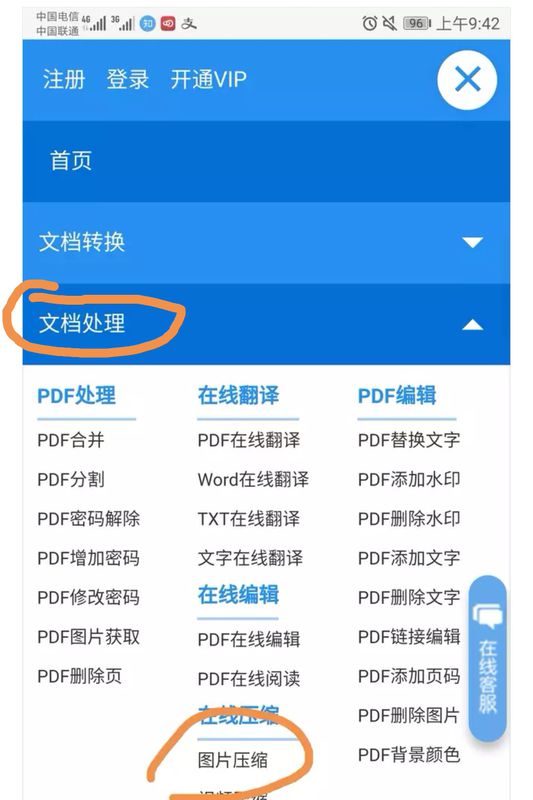 2、进入网站后,在右上方会出现菜单的符号,点击菜单的符号,就会看到导航的列表。点击【文档处理】,就会看到图片压缩,点击【图片压缩】进入到压缩的页面。