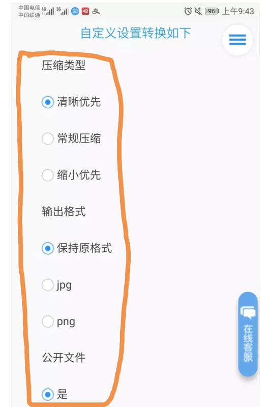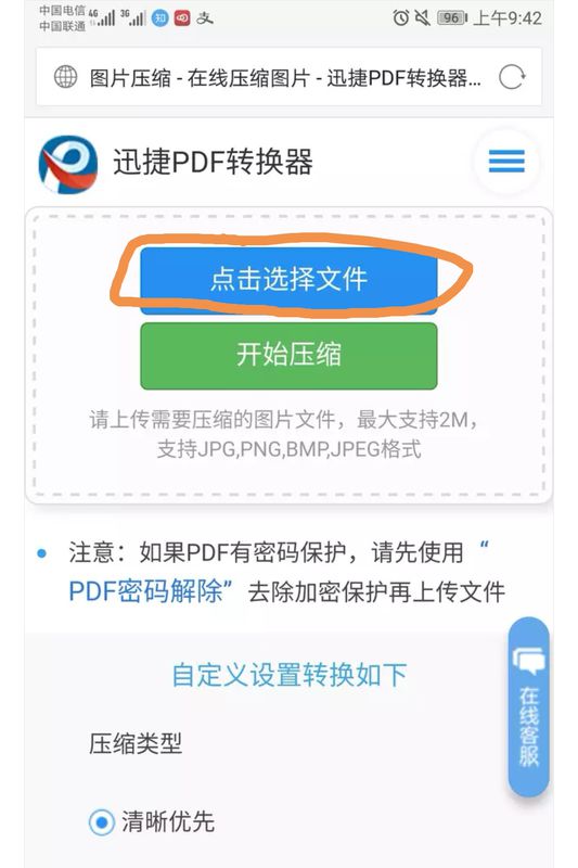 3、为了调整图片压缩的清晰度将以清晰优先的模式压缩图片,选择箭头指向的按钮。