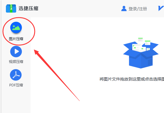 一、进入页面之后会有三个压缩的功能选择,有图片压缩、视频压缩以及PDF压缩,我们只需要点击图片压缩即可。