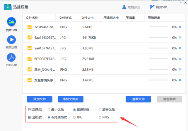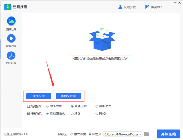 二、之后点击添加文件或添加文件夹,将要进行压缩的图片添加进操作界面中。当然也可以直接拖拽文件进行添加。