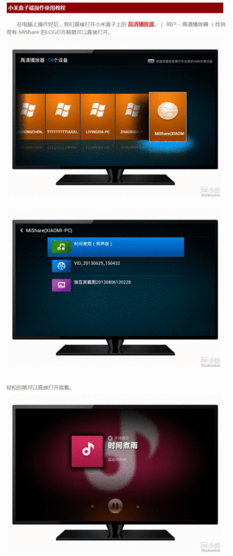 小米盒子高清播放器遵循SMB协议,需要电脑上手动设置,比较麻烦