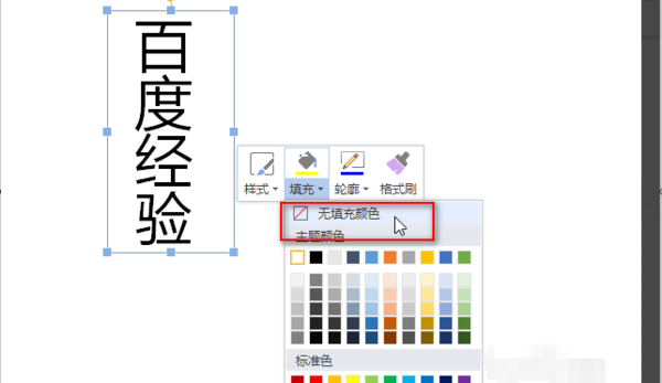 4、在边框上点击一下选中边框,然后右键一下,点击“填充”按钮下的“无填充颜色”。
