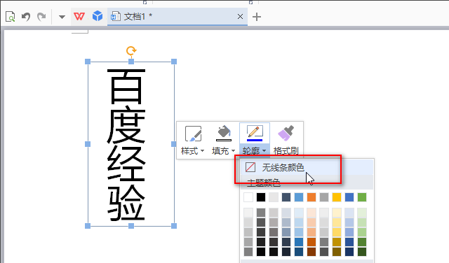 5、选中边框,再次右键,点击“轮廓”下的“无线条颜色”。