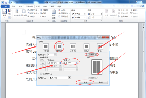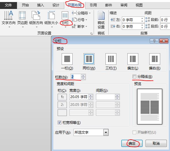 word中,如何将正文分成等宽两栏显示,中间有分割线