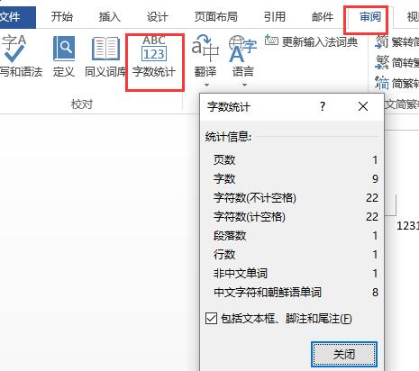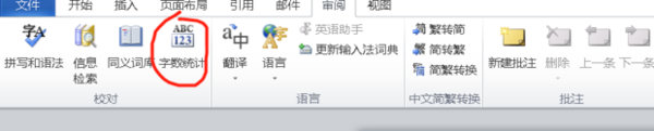word2007与word2010,这两个版本的字数统计功能位置都差不多,审阅——字数统计,如下图所示。