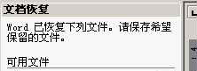 Word提供了“自动恢复”功能,可以帮助用户找回程序遇到问题并停止响应时尚未保存的信息。实际上,在你不得不在没有保存工作成果就重新启动电脑和Word后,系统将打开“文档恢复”任务窗格(图1),其中列出了程序停止响应时已恢复的所有文件。文件名后面是状态指示器,显示在恢复过程中已对文件所做的操作,其中:“原始文件”指基于最后一次手动保存的源文件;“已恢复”是指在恢复过程中已恢复的文件,或在“自动恢复”保存过程中已保存的文件。