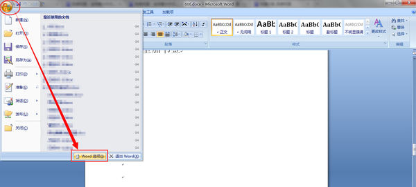 1、打开word文档,点击左上角的【开始】,选择【Word选项】;