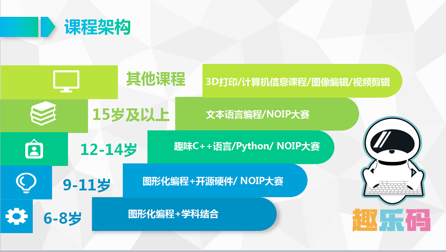 2018年,编程教育成为中小学必修,进入高考大纲。人工智能时代来临,学习编程应该是今年重要的事情之一。少儿编程教育可以通过编程游戏启蒙、可视化图形编程等课程,培养学生的计算思维和创新解难能力。