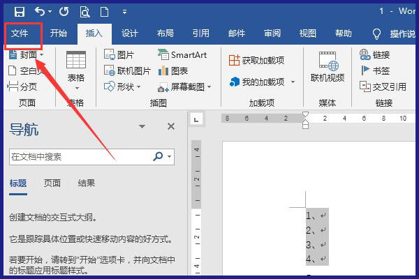 1、在word文档中点击文件选项卡。