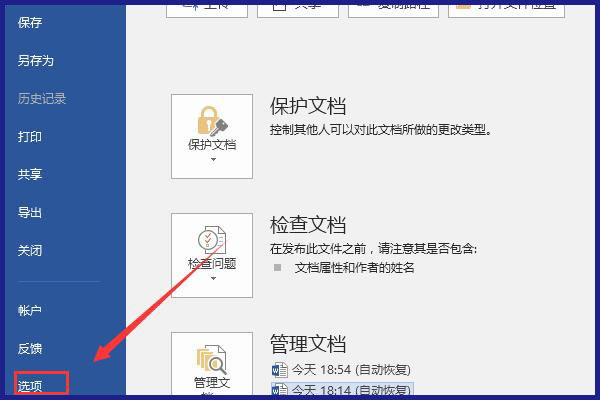 2、在文件选项卡中点击最下方的选项按钮。