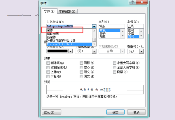 四、列表内选择“宋体”。