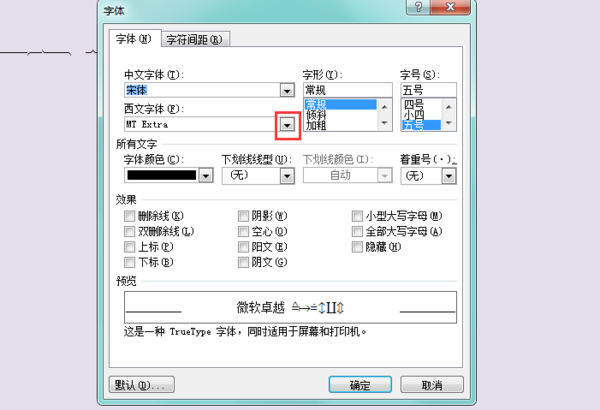 五、然后点击西文字体右边“箭头”。