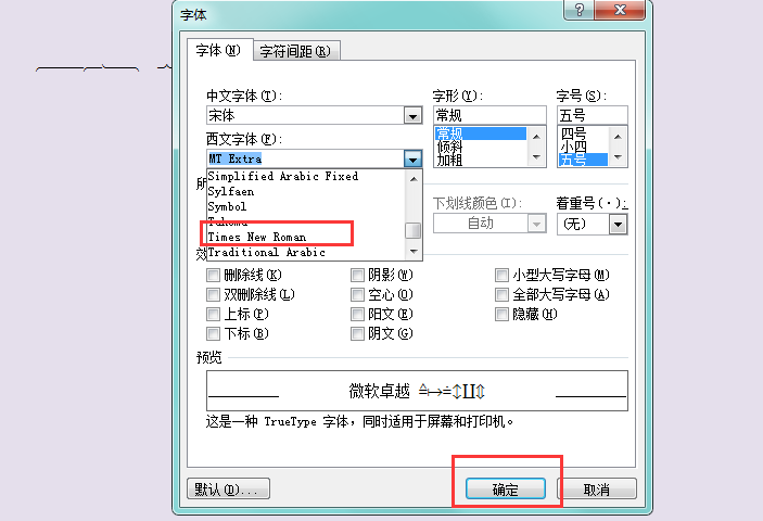六、列表内选择“Times New Ronan”,最后点击“确定”即可恢复。