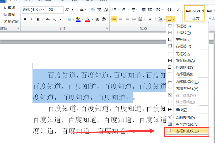 word文档中的边框和底纹怎么弄?