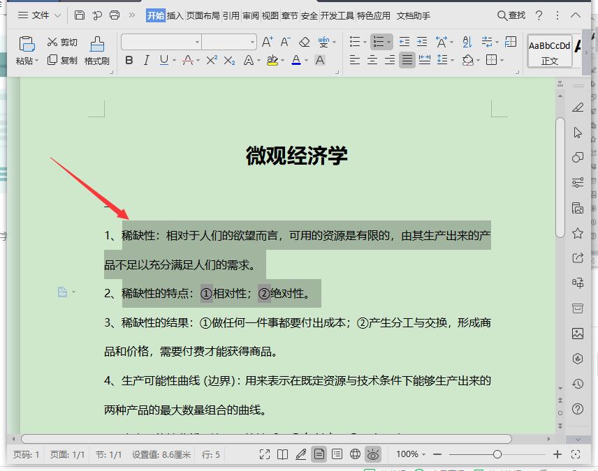 2、接下来选中需要添加底纹的文字段落。