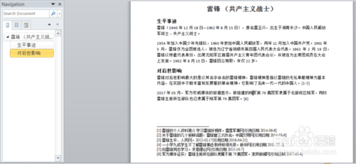 首先我们创建一篇“论文”,假设已经写好主体部分,并把尾注也已经插入。如图所示。左侧栏是目录。