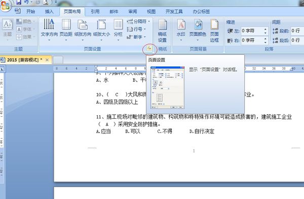 选择顶端的布局,页面设置