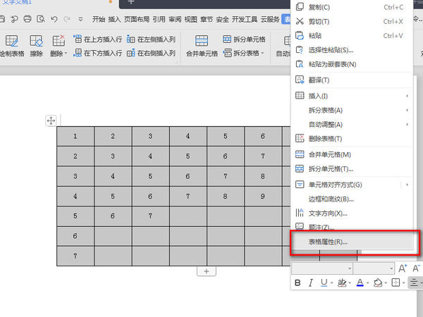 3、或者选中表格点击鼠标右键,在弹出的选项里面选择“表格属性”。