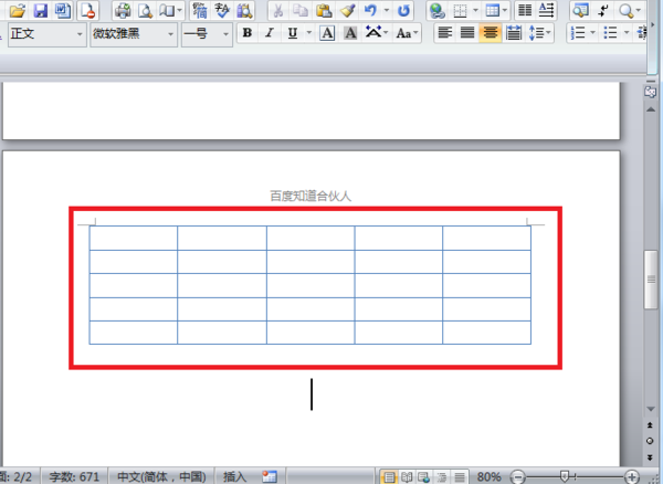 7、这样在word文档中就建立好了一个带有颜色和宽度设置的表格。